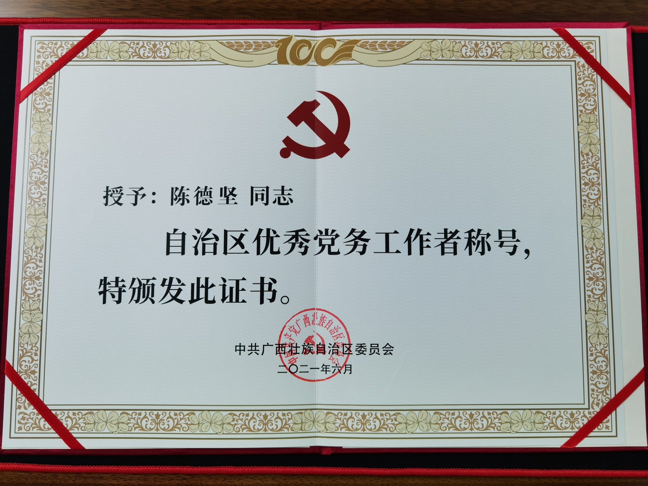 玉柴物流集團(tuán)黨委書(shū)記陳德堅(jiān)榮獲自治區(qū) “優(yōu)秀黨務(wù)工作者”稱號(hào)